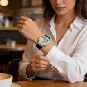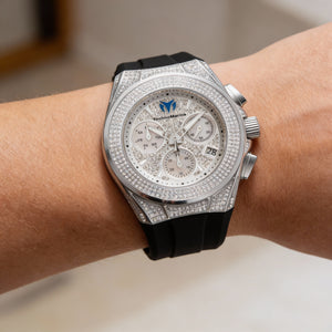 • **Sophisticated Chronograph with Dazzling Accents:** Master your time with a versatile chronograph feature, beautifully enhanced by 781 sparkling stones that add a touch of luxury and distinctiveness to your wrist.