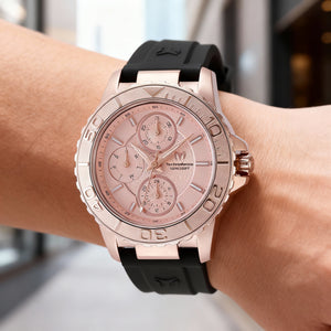 Discover the TechnoMarine Sea TM-725015, a masterpiece where classic rose-gold elegance meets the versatile durability of a high-quality silicone strap. Experience its precise Quartz movement and Chronograph functionality, crafted for the modern individual who demands both sophisticated style and unwavering performance.