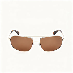 Command attention and exude effortless confidence with the modern elegance of these Timberland sunglasses. Their Shiny Pale Gold frames perfectly complement the superior protection and glare reduction of Brown Polarized lenses.
