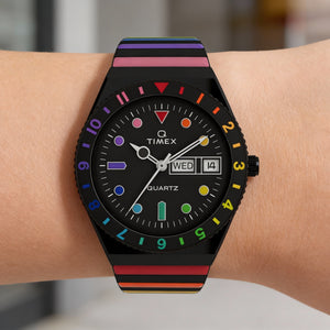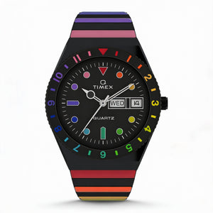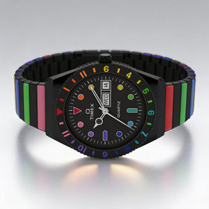 Embrace vibrant style and effortless charm with the Timex 36 mm Q Rainbow, a timepiece crafted to illuminate your every day with a touch of playful sophistication. Designed for the modern woman, its fully adjustable expanding bracelet ensures both comfort and a flawless fit, making it your perfect everyday statement.