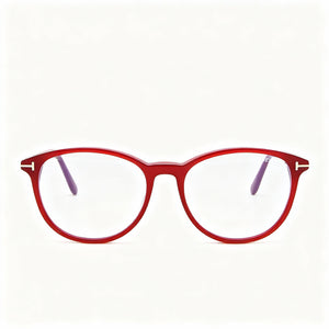 Elevate your presence with Tom Ford Modern frames, where the captivating shiny pearlized red, subtly accented with the iconic 'T' logo, declares your refined style. Beyond aesthetics, experience essential digital protection with blue light block lenses, ensuring your vision is as clear as your ambition.