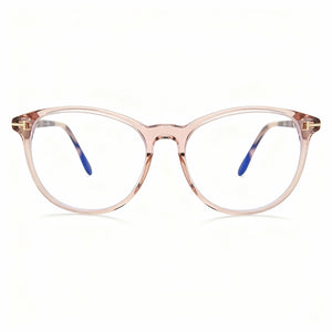 Tom Ford FT5810-B Women's Transparent Pink Plastic Oval Blue-Light Block Eyeglasses 53mm