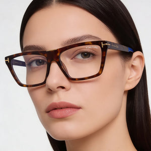 Elevate your everyday style with the sophisticated allure of Tom Ford eyeglasses, designed to beautifully frame the modern woman's gaze. Experience the perfect fusion of classic Havana frames and essential blue light block lenses, ensuring both chic aesthetics and digital comfort.