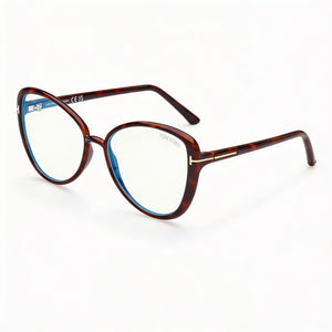 Elevate your look with the distinctive elegance of Tom Ford's butterfly eyeglasses, crafted in a rich Havana frame. Designed for the modern woman, these stylish frames feature blue light block lenses to provide comfort and protection for your eyes.