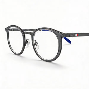 Step into modern sophistication with the Tommy Hilfiger Modern eyeglasses, a perfect blend of sleek design and contemporary appeal for men. Crafted from durable alloy steel in a refined grey finish, these lightweight frames with beautiful detailing ensure both comfort and a distinct style statement.