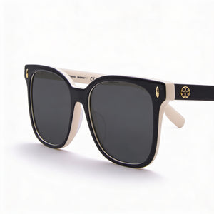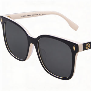 Tory Burch Classic TY7203U Women's Plastic Frame Sunglasses with UV Protection in Black, Ivory & Dark Grey, Gray Lenses, 53mm