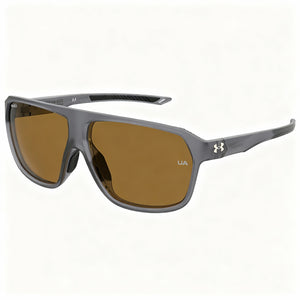 Under Armour UA DOMINATE/F Unisex Sport Sunglasses, Transparent Grey Polyamide Frame, Brown High Contrast Non-Polarized Lenses 65mm
