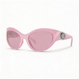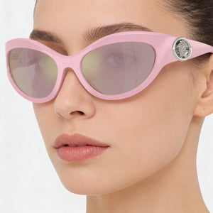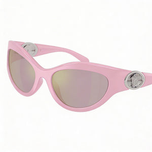 Embrace unparalleled sophistication with the Versace Glam eyewear, designed for the woman who commands attention. Featuring a stunning Pink frame and captivating Pink Mirror Rose Gold polarized lenses, these sunglasses offer both iconic style and essential UV protection.