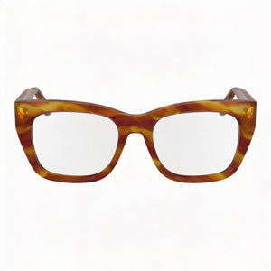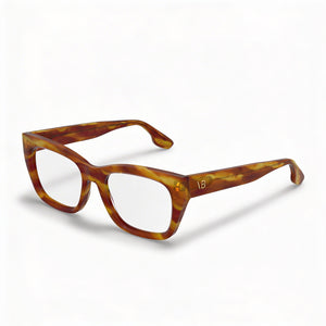 • Crafted from durable Acetate, these frames feature a chic Striped Blonde Havana finish for timeless elegance.