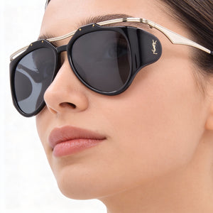 Yves Saint Laurent Classic Women's Gold Plastic and Metal Frame Black Lens Non-Polarized 55mm Sunglasses